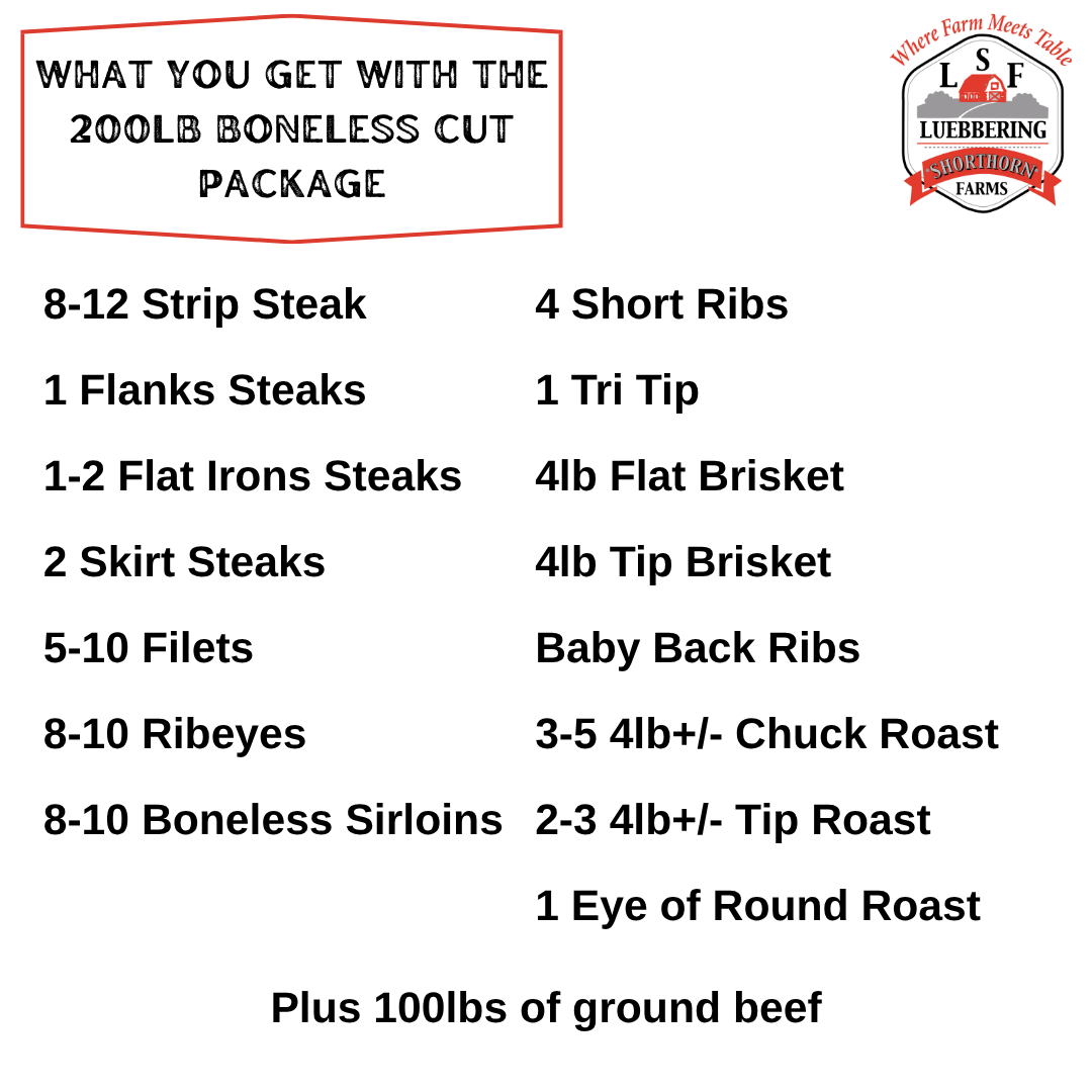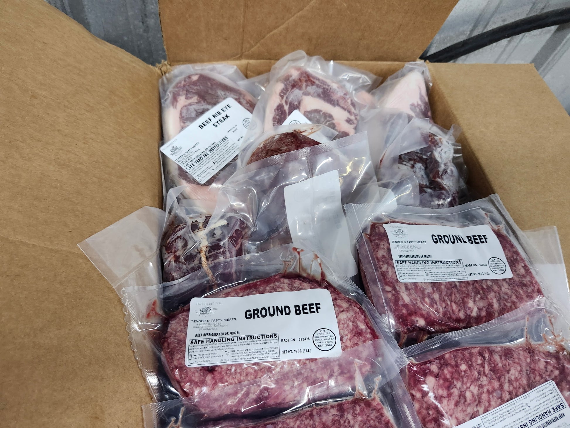 - 100 lbs of our premium ground beef — a freezer must-have for busy families.